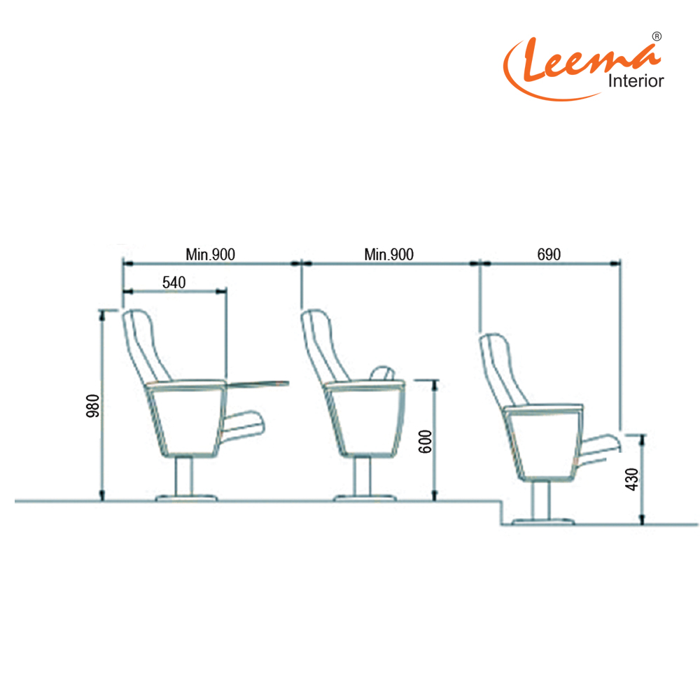 Seating Arrangement :  Single or Gang type (02/03/04/05 or more) combination chairs per gang.