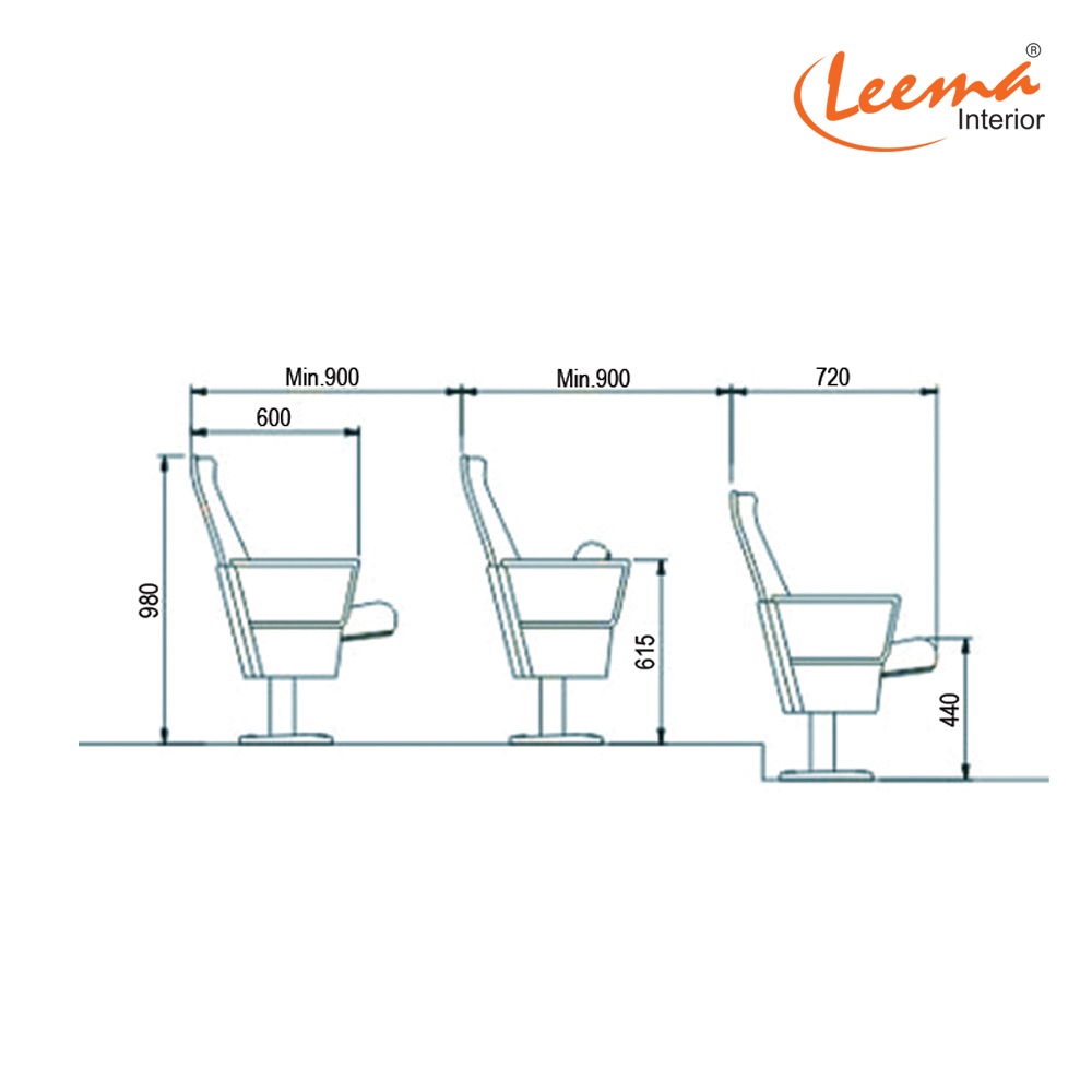 Seating Arrangement :  Single or Gang type (02/03/04/05 or more) combination chairs per gang.