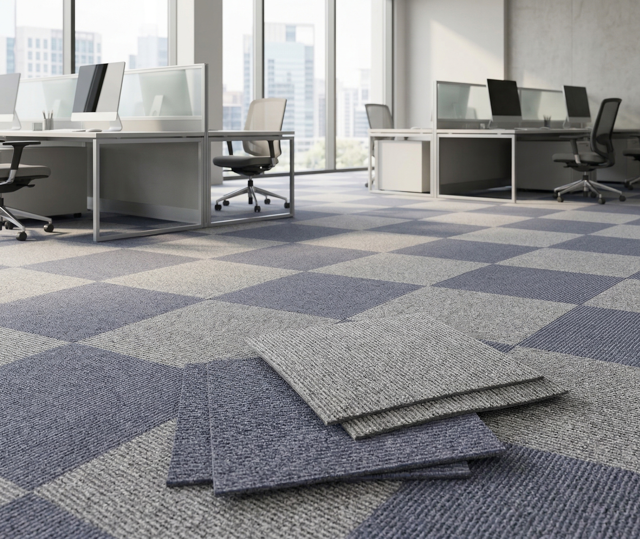Carpet tiles comes in different shapes and sizes which can be laid to the floor, enabling to create unique patterns and designs with very little effort. The biggest advantage that carpet tiles have over regular wall-to-wall carpeting is that individual tiles can be removed and replaced with little effort & expense. Carpet tiles are the ideal solution for raised floors for the same reason
