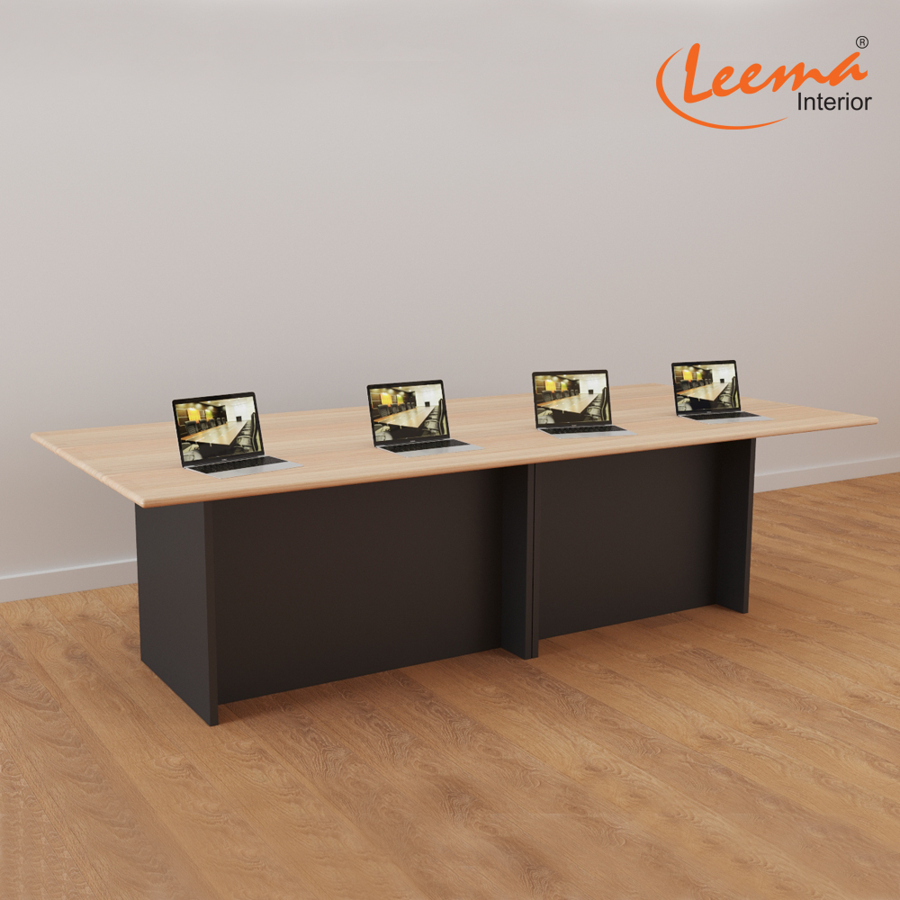 Conference table made of 25mm thick melamine laminated board top finished with 2mm thick PVC edging, 18mm thick melamine laminated board structure finished with 1mm thick PVC edging.