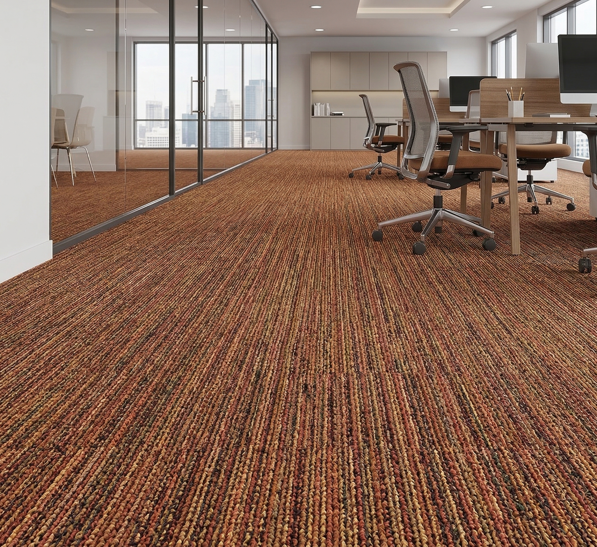 Wall-to-wall carpet is a carpet intended to cover a floor entirely. Loop pile carpets are loops of yarn which creates a stylish finish with a durable, soft, smooth feel. This type of carpets have a range of distinctive patterns created by a combination of higher and lower loops while cut pile carpets are manufactured by cutting the yarn loops which produces an upright pile that has a more luxurious, formal look than loop pile. These carpets have a combination of cut and looped yarns and can create sculptured effects